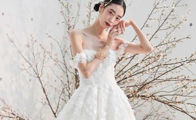 職人の手で創り上げられる、繊細で美しいインポートドレスから専属のデザイナーが日本の花嫁に向けてデザインした、トレンド満載のオリジナルドレスまで多彩なドレスコレクションを一度にご覧頂く事のできるドレスショーをご体感いただけます。またゲストモデルにタレントとして幅広くご活躍され、INSTAGRAMフォロワー数73万人と注目を集める雪平莉左さんをお迎えします。